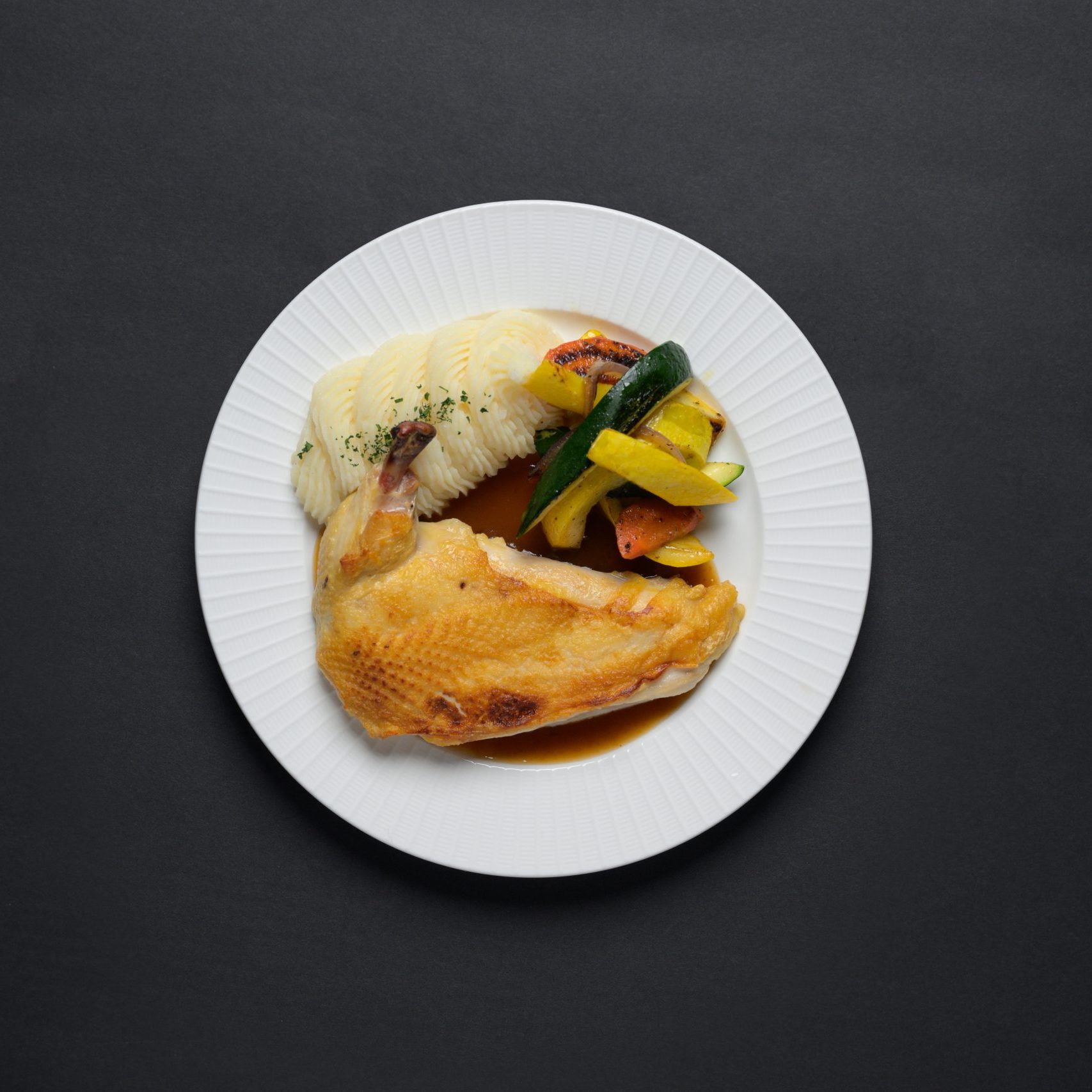 Served with chicken jus